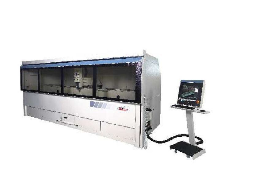 Czteroosiowe centrum obróbcze firmy Gemma model Rumba 4000 INOX przeznaczone jest do wykonywania obróbek profilach aluminiowych, PCV oraz stali. Maszyna wyposażona jest w standardzie w mocniejsze wrzeciono o MOCY 6,6 kW