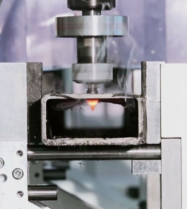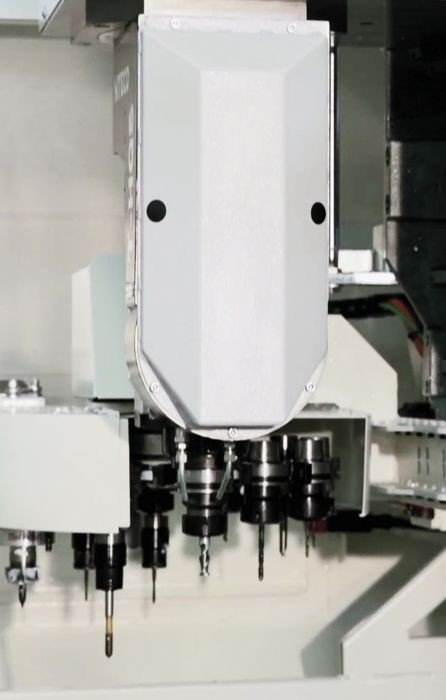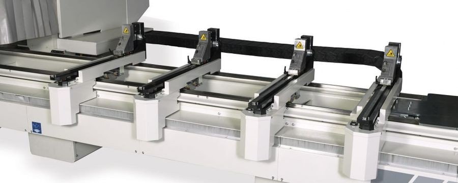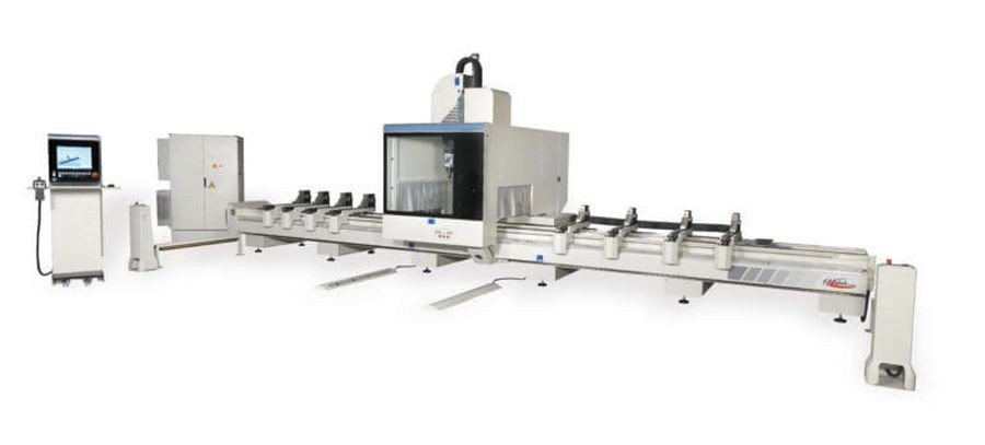 Centrum obróbcze z 5 osiami sterowanymi przez CNC, zdolne do pracy na wytłaczanym aluminium, lekkich stopach, PCV i żelazie. Maszyna jest wyposażona w Elektro wrzeciono (15 kW, 24 000 obr./min) z uchwytami typu HSK63, wstępnie ustawione na automatyczną zmianę narzędzia. Magazyn narzędzi zamocowany jest na ruchomym stojaku i ma pojemność do 12 narzędzi do wiercenia, frezowania i gwintowania oraz na frez talerzowy o maksymalnej średnicy 300 mm. Centrum wyposażone jest w 8 standardowych docisków. Smarowanie zestawu za pomocą mikro kropli czystym olejem. System kurtyn świetlnych i układ smarowania prowadnic.