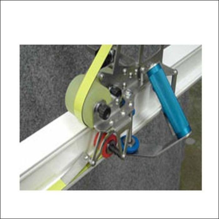 Urządzenie do naklejania taśmy na sztangach profili stosowane w technologii suchego statycznego szklenia okien w systemach Gealan i Bruegmann